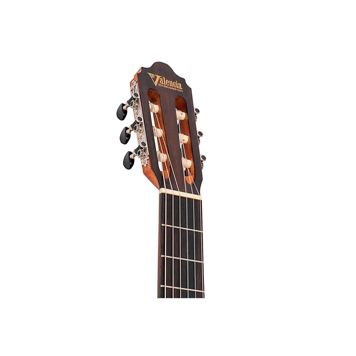 - Tuning machines: Valencia Custom Decorated Diecast; Nickel Plated with Satin Black Buttons