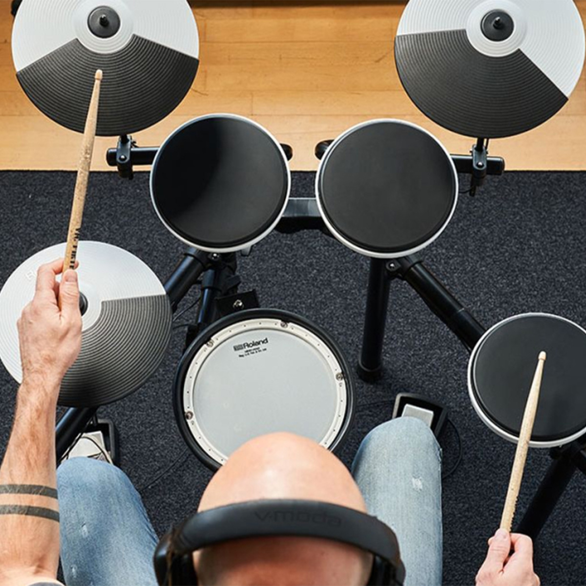 - Drum throne, drumsticks, and headphones are not included